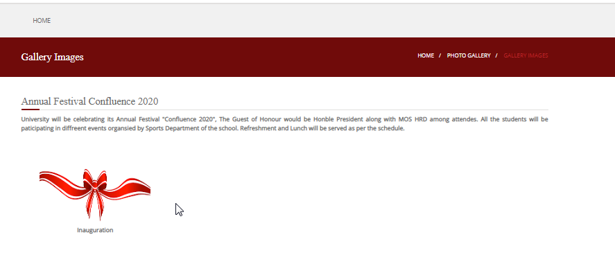 Screenshot of the Gallery created by the name “Annual Festival confluence 2020” in Photo Gallery section of the website